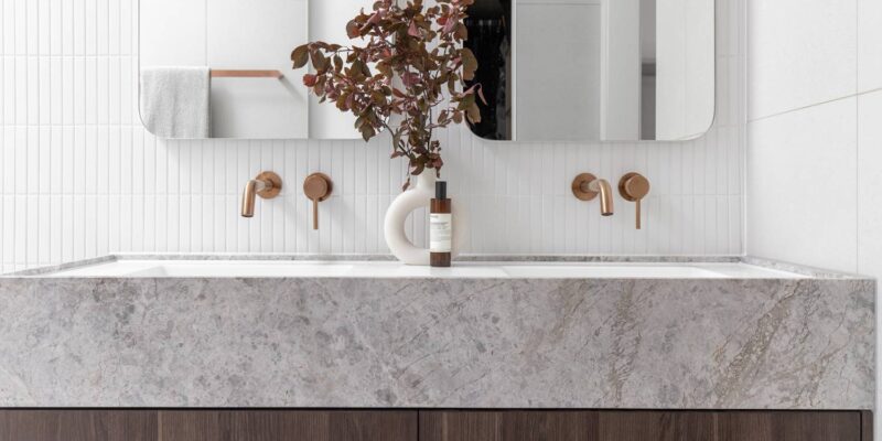 Natural textures like stone, wood, or neutral tile can help transition between finishes smoothly, creating a cohesive and intentional look.